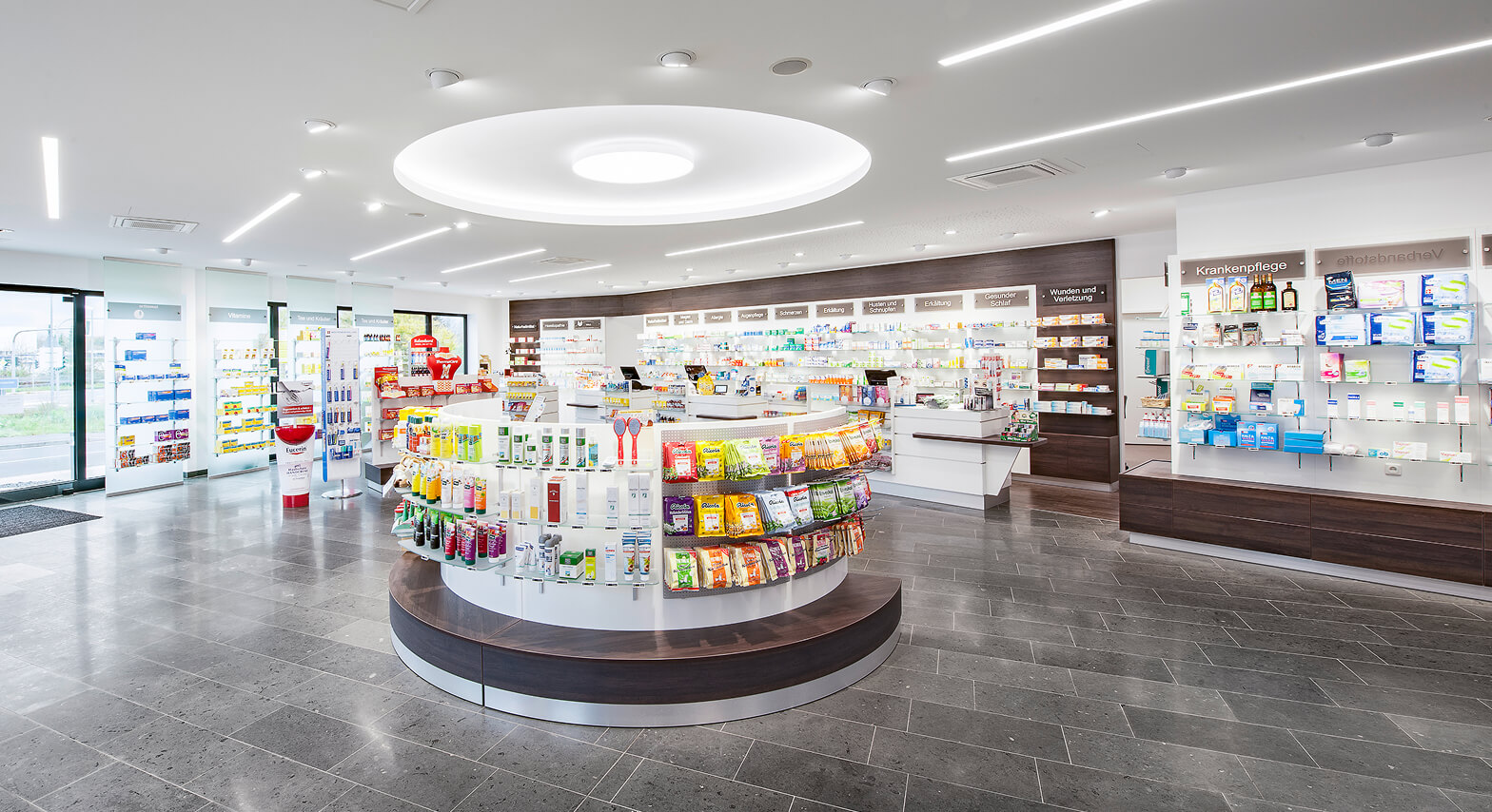 Die Gestaltung einer Apotheke erfordert weit mehr als ansprechende Möbel – sie muss gesetzliche Vorgaben, Arbeitsabläufe und Kundenbedürfnisse gleichermaßen berücksichtigen. Von der Offizin über das Labor bis zum Backoffice entwickeln wir Lösungen, die Funktionalität, Hygiene und ein professionelles Erscheinungsbild verbinden. Unsere Apothekenprojekte zeigen, wie individuelle Raumkonzepte Arbeitsprozesse vereinfachen und gleichzeitig eine vertrauensvolle Atmosphäre für Kunden schaffen.