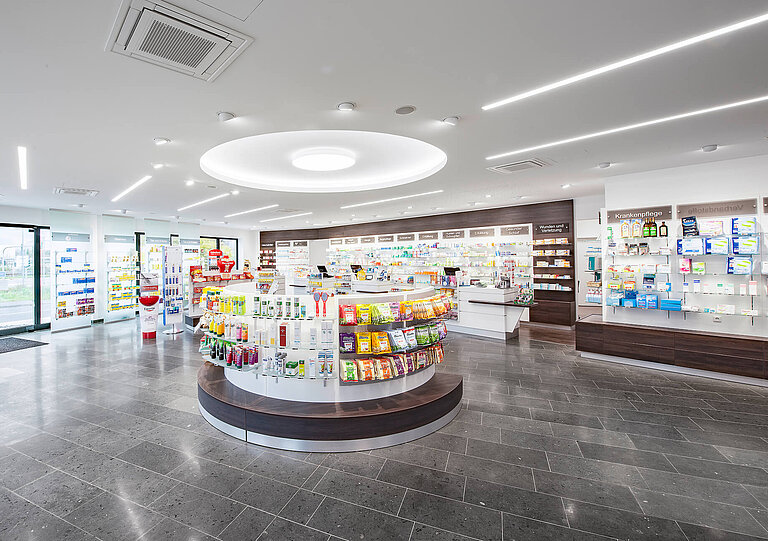 Die Apotheke am Mainbogen entstand als Neugründung in einer großzügigen Freifläche eines Ärztehauses und bietet auf 295m² ein modernes, kundenorientiertes Raumkonzept. Gütler entwickelte eine klar strukturierte Lösung, die Besucher intuitiv leitet und gleichzeitig optimale Arbeitsabläufe für das Apothekenteam ermöglicht.