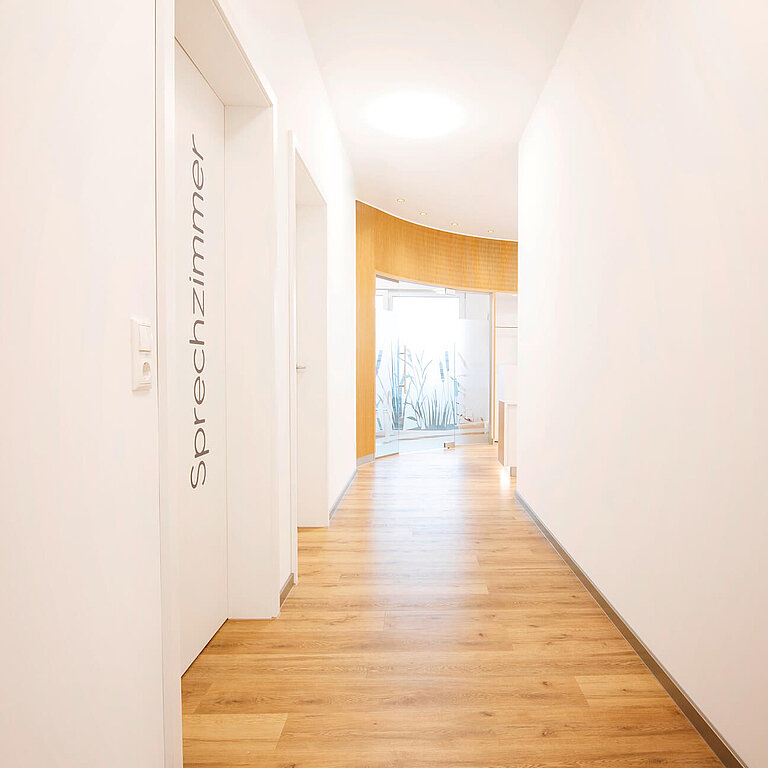 Die Praxis entstand im ersten Obergeschoss einer neu errichteten Gewerbeimmobilie in Holzbauweise am Rand des Herrieder Gewerbegebiets. Für die Ärzte war es entscheidend, eine moderne Praxis zu schaffen, die medizinische Effizienz und Wohlfühlambiente vereint.